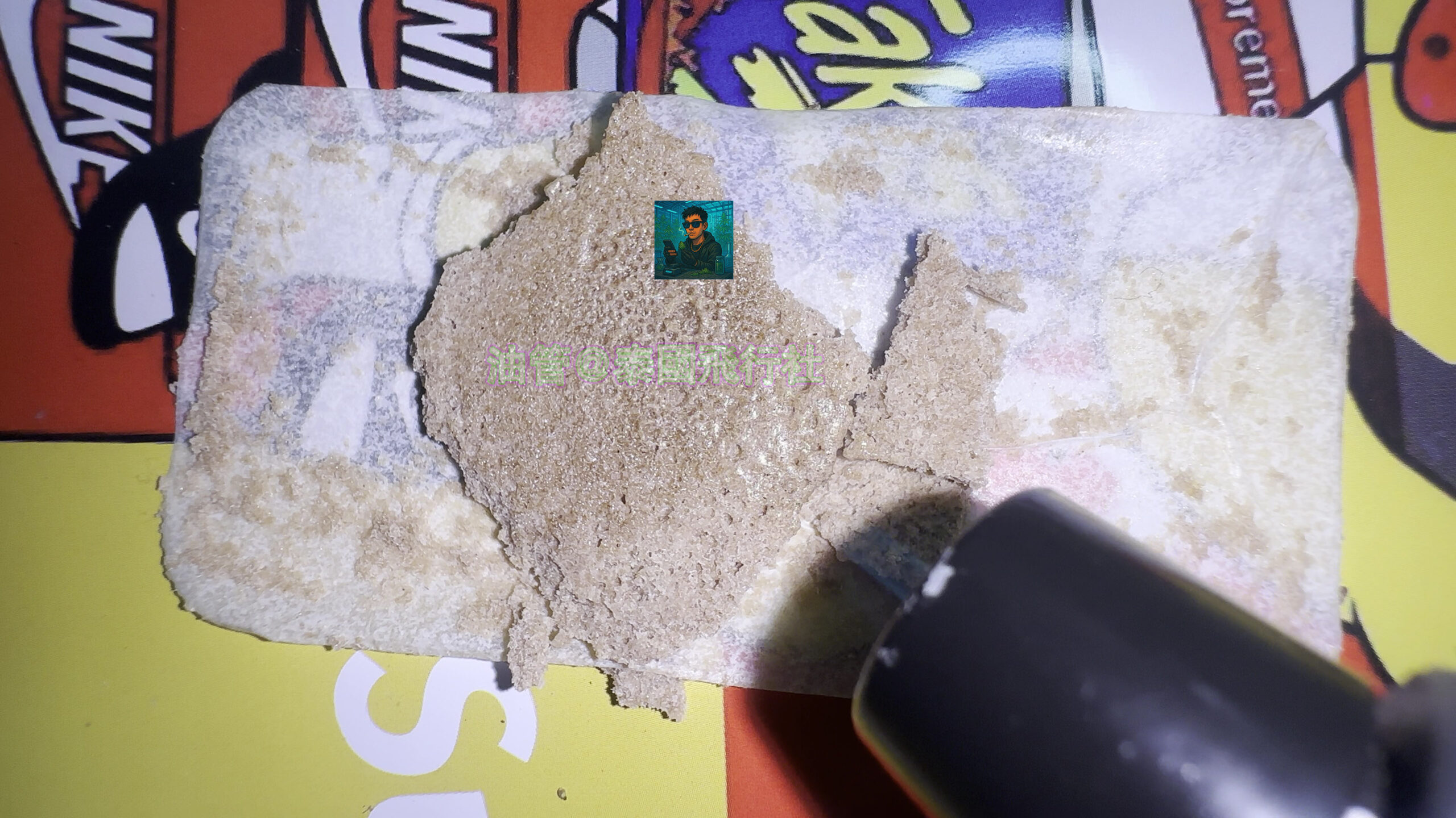 提取大麻花朵上的糖腺體,經過風乾,收集起來,再經過熱壓,經過固化出售的優質hash。