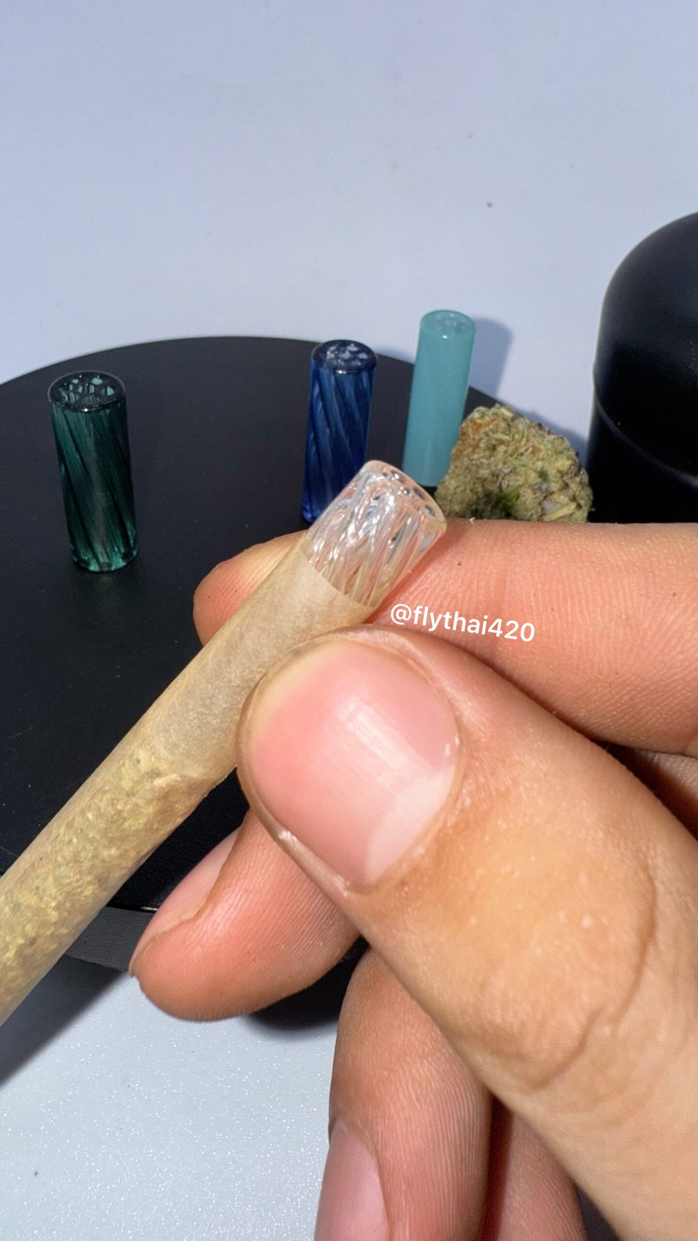 七孔旋轉玻璃濾嘴,顔色多種,我最喜歡透明和鮮紅色,口感賊棒,有效吸附一氧化碳和雜質,抽烟的過程中玻璃濾嘴降溫效果最棒,即使抽到最後也不會出現燒嘴唇的情況。