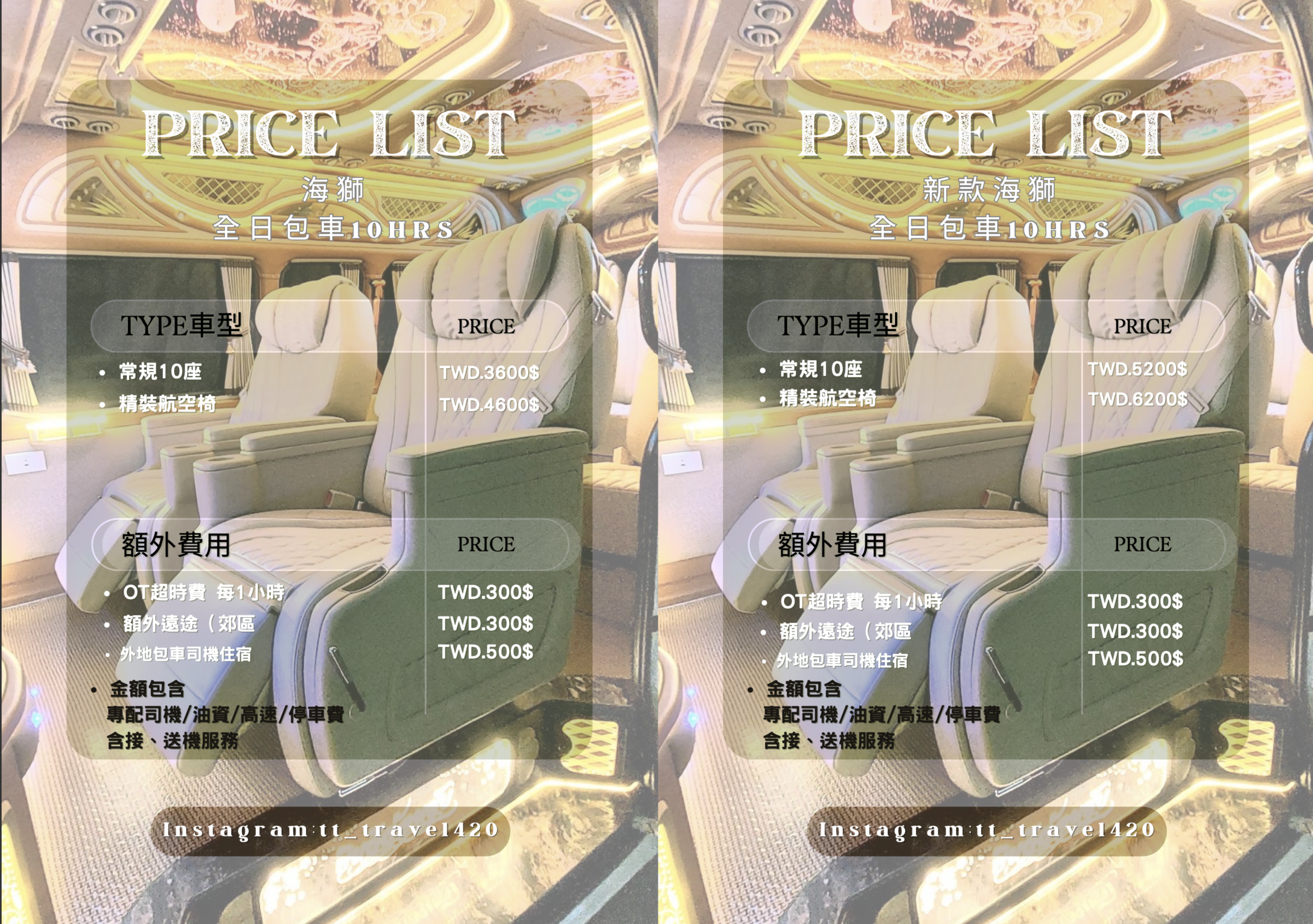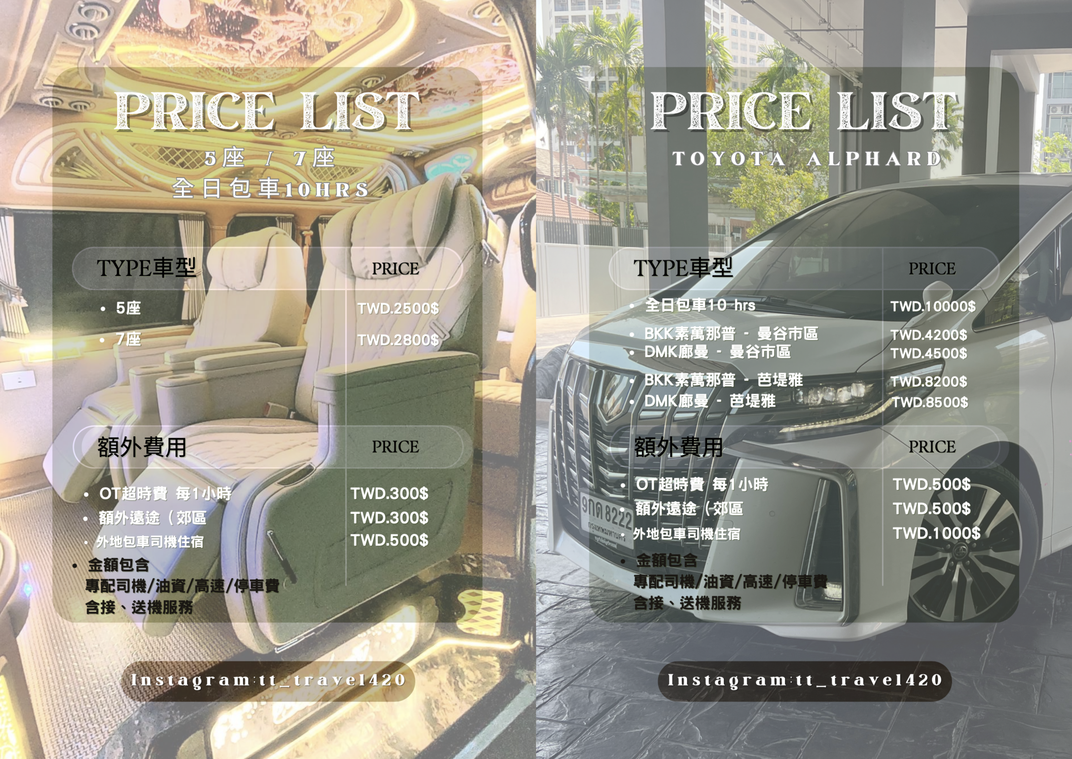 *僅Alphard開放HotBox(額外費用 *2026 / 01 / 01起, 臺幣訂單收取+3-5% *地陪服務請先行程預約